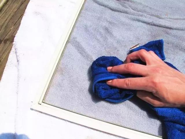 5、順便用濕毛巾蘸肥皂水將紗窗的鋁制邊緣擦干凈;